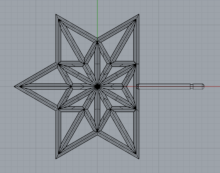 Top view of Rhino3D rendering of Shuriken Flying Star earrings.