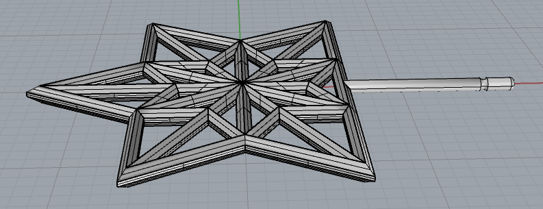 Top view of Rhino3D rendering of Shuriken Flying Star earrings.